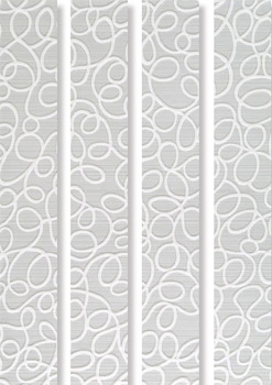 Дизайнеры Aurelia Ceramiche нанесли различные узоры на поверхность настенной плитки, а фоном оставили выбранные цвета. Настенная плитка Cover представлена в одном размере: 25×40, декоративные элементы и бордюры в размере: 6×40. Также в коллекцию Aurelia Cover входит напольная плитка размера 33.8×33.8.