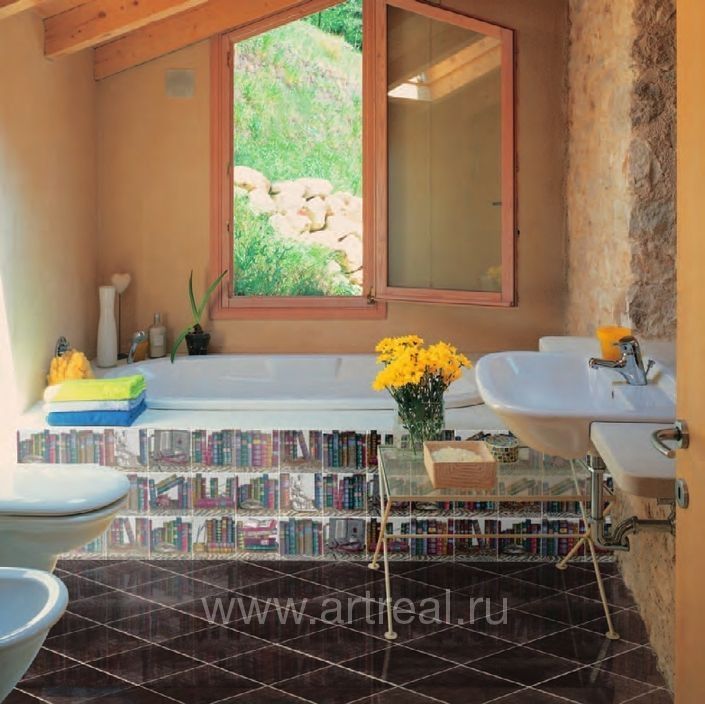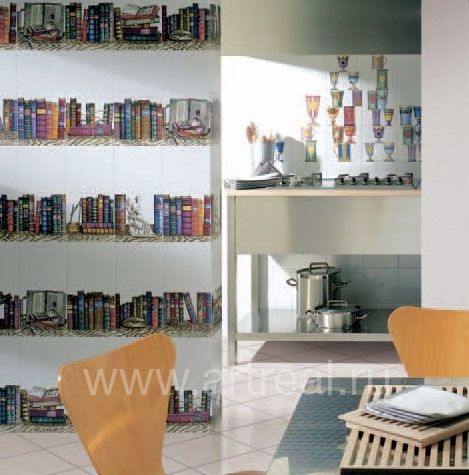 Плитка Bardelli Liberia перенесет мыслями в прошлый век, когда люди очень ценили книги. На итальянской плитке выполнен декор с помощью декалькомании: книги, будто расшитые золотом, книги с раскрытой страницей, со старинными росписями. Такая плитка будет подходящей в кабинете, гостиной, спальне, и даже в дамской комнате. Цвета рисунков как в радуге. Элементов – 11. Размер 20х20 см.