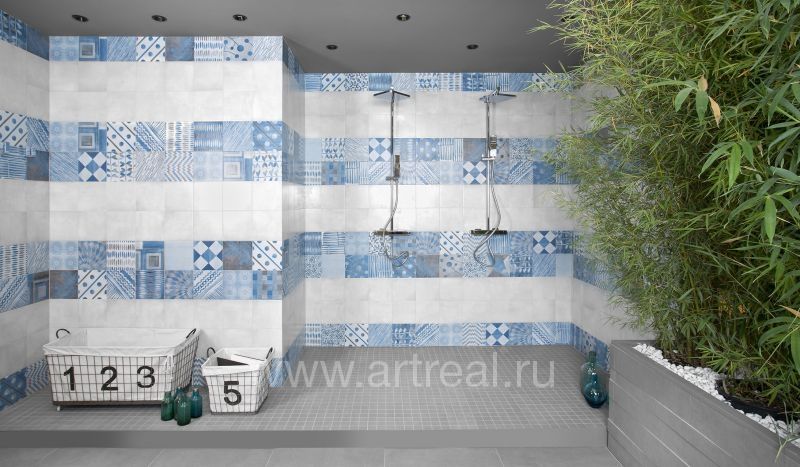 Цветовая гамма коллекции включает 5 натуральных оттенков. Все цвета фоновой плитки гармонично комбинируются как между собой, так и с декоративными элементами.