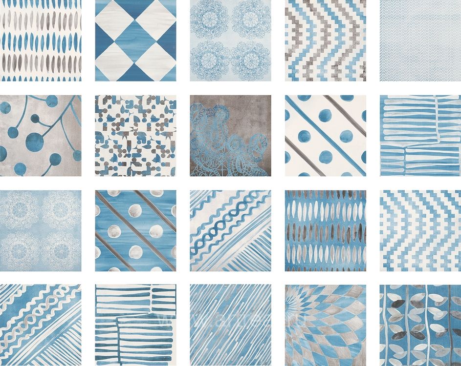 Вся плитка и мозаика выпущена в едином формате - 20х20 см. Формат, характерный для керамики ручной работы, подчеркивает рисунок декоров, будто нанесенный красками вручную.