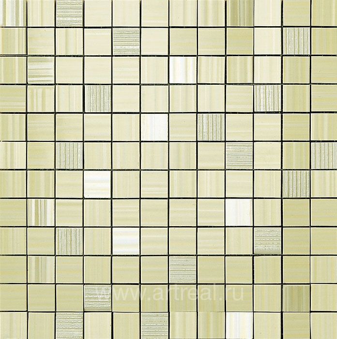 Сетка мозаики входящая в коллекцию производится с размерами 30,5х30,5 см, а отдельные ее элементы имеют размеры 2,9х2,9 см. Сама мозаика поступает в продажу наклеенной на специальную пленку, которая удаляется после ее укладки.