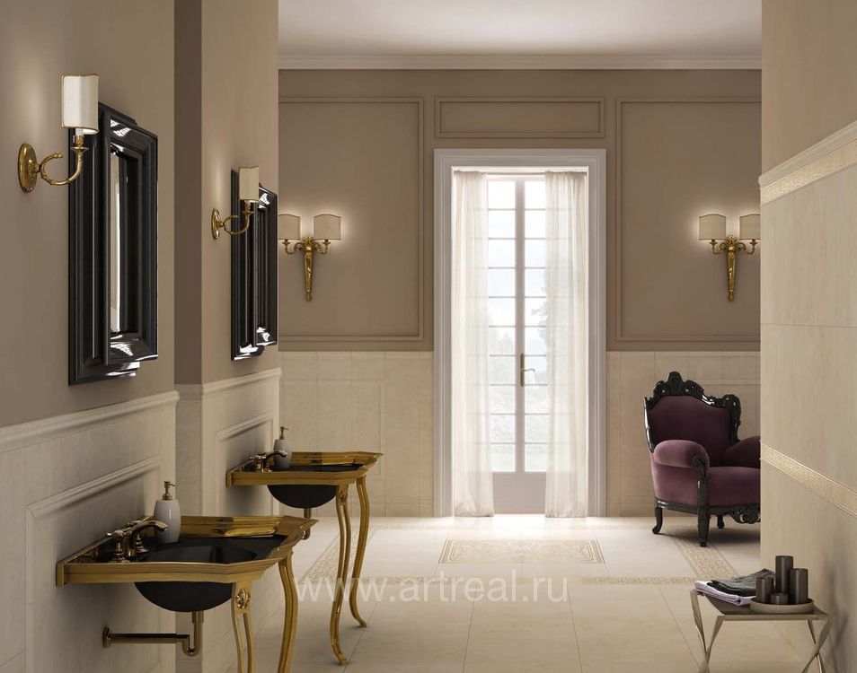 Серия Canova включает настенную плитку из белой глины и напольное покрытие из керамогранита, а также богатый выбор разнообразных декоративных элементов. Отдельно стоит обратить внимание на объемную капитель и роскошное панно, придающие всей коллекции утонченность античного стиля.