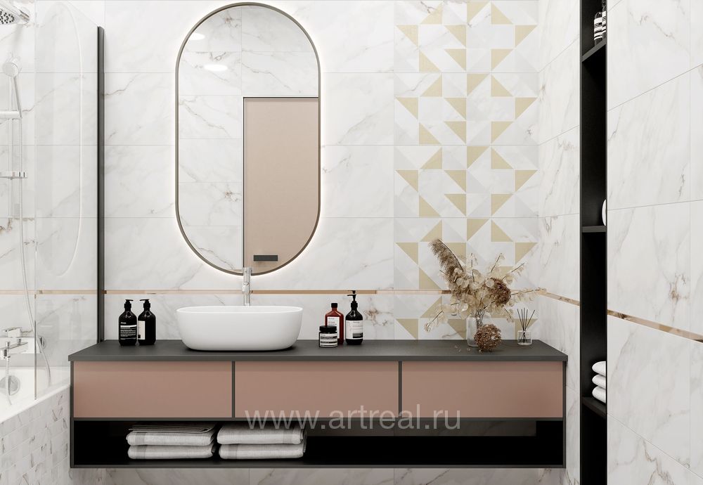Размеры:60×60, 25×75Типы элементов:Керамогранит, Настенная плитка, ДекорДизайн:Под мраморСтиль:КлассикаLaparet (Россия)от 891 руб/м²