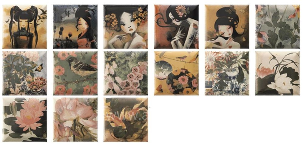 Размеры:20×20, 15×15Типы элементов:Настенная плитка, ДекорДизайн:Цветы, Скошенный крайСтиль:ПэчворкMainzu Ceramica (Испания)от 283 500 руб/м²