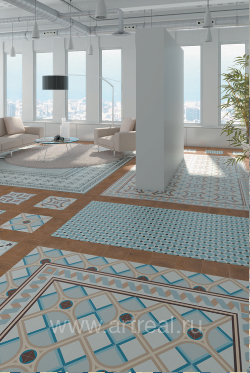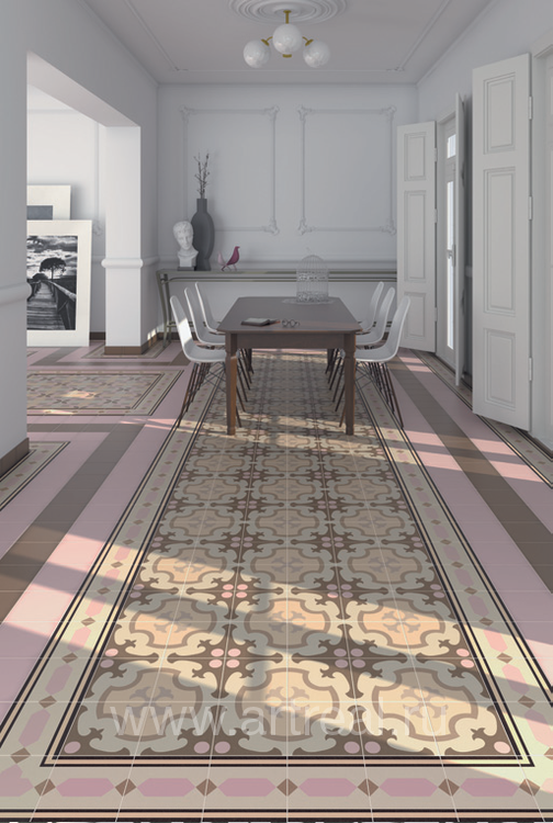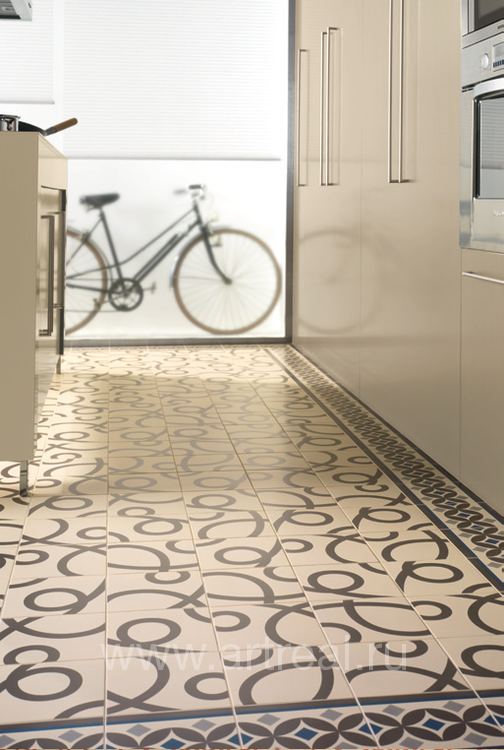 В коллекции представлены как растительные, так и геометрические орнаменты, цвет плитки варьируется от белого до практически черного базальта (всего 12 вариантов цвета). Разнообразие цвета и рисунка предоставляет возможность проявить свою индивидуальность при создании интерьера. Толщина напольной плитки (8 мм) позволит использовать ее для оформления, как домашних помещений, так и гостиничных помещений с большей проходимостью. Совместима с настенной плиткой других коллекций.