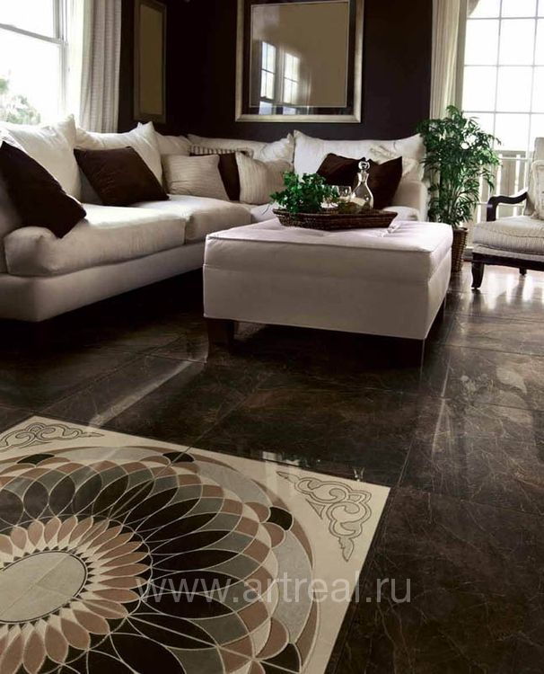 Керамогранит этой коллекции будет отличным выбором для облицовки гостиной, холла или зала.